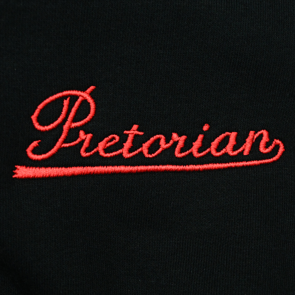 A baseball cap from the "Classic" collection by Pretorian. It is made of high-quality, thick cotton. There is a discreet print on the front of the sweatshirt and side pockets. It has a large embroidered print on the back. Pretorian clothing is characterized by the highest quality of workmanship and attention to the smallest details and details. The product is fully made in Poland.