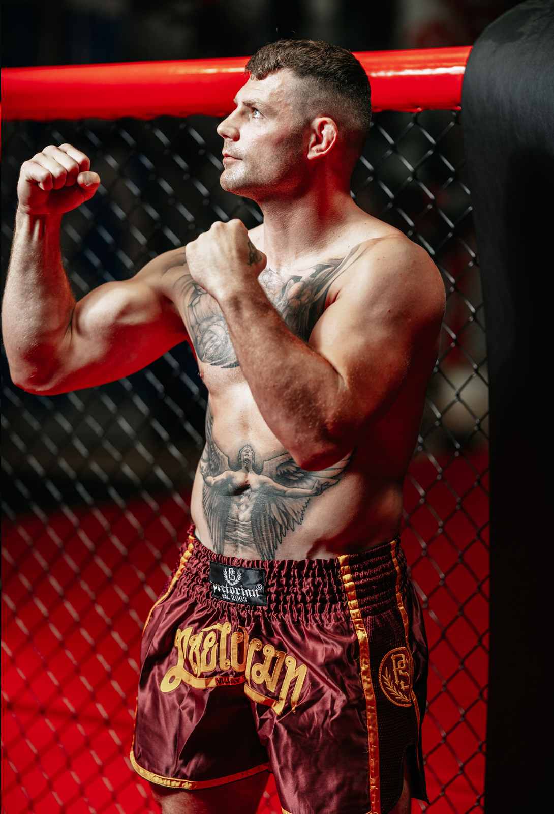 The shorts have a loose cut and additional slits on the sides of the legs, ensuring comfort during high kicks. A wide, elastic waistband that perfectly holds the shorts in place and prevents them from moving. In the middle, it is decorated with a patch with the image of the Pretorian brand logo and a large application - Pretorian Muay Thai. The shorts are very light - made of light and flexible polyester.