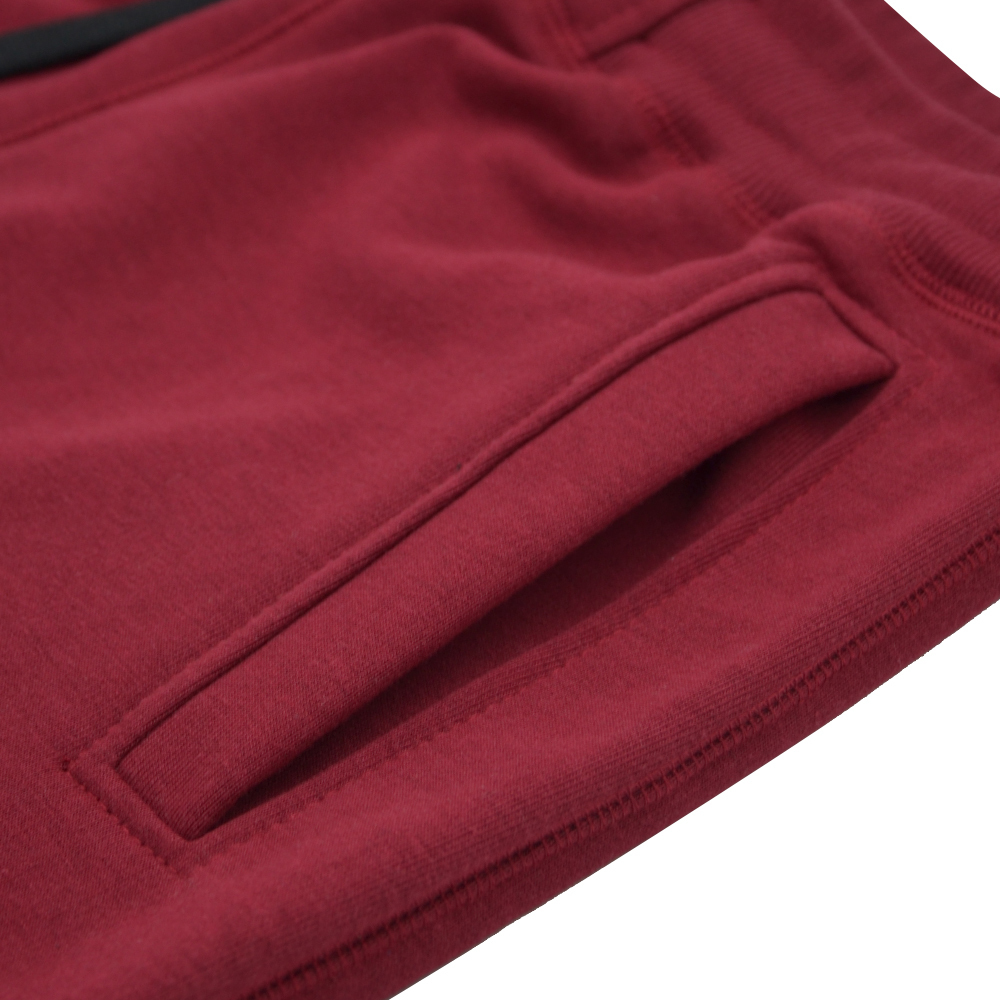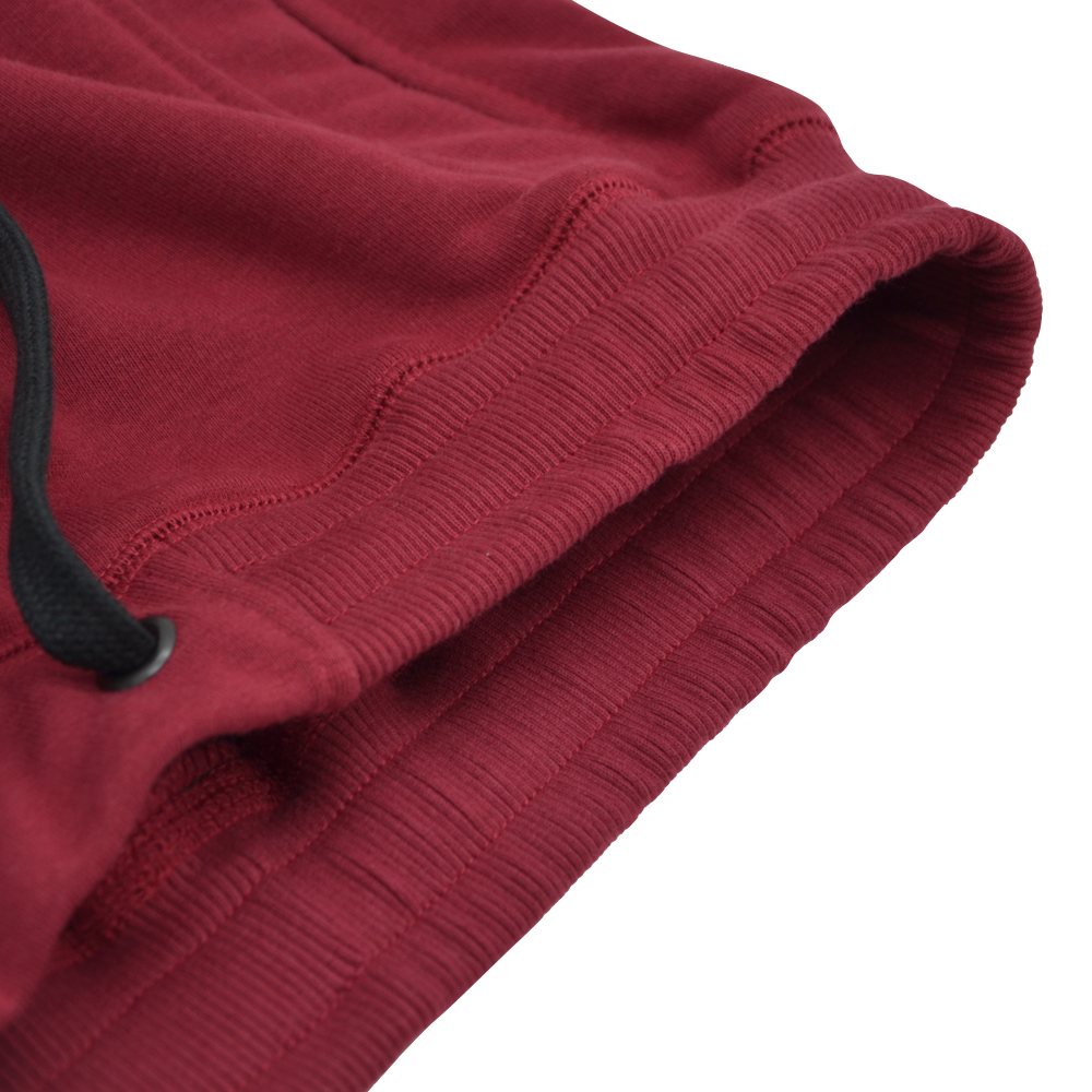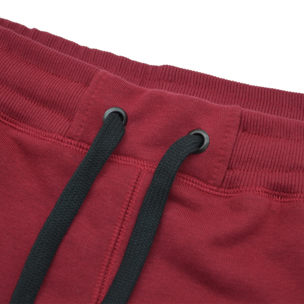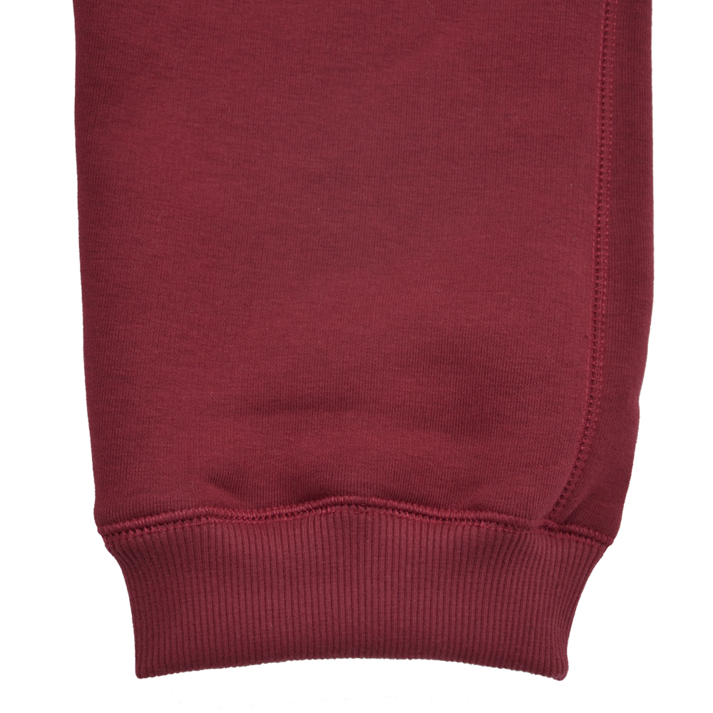 Doskonałej jakości spodnie dresowe koloru bordowego wykonane z wysokogatunkowej bawełny. Dresy posiadają regulację obwodu w pasie za pomocą sznurka. Nogawki zakończone zostały elastycznymi ściągaczami. Wyposażone zostały w dwie kieszenie boczne oraz jedną tylną. Poniżej lewej kieszeni znajduje się biały haft.